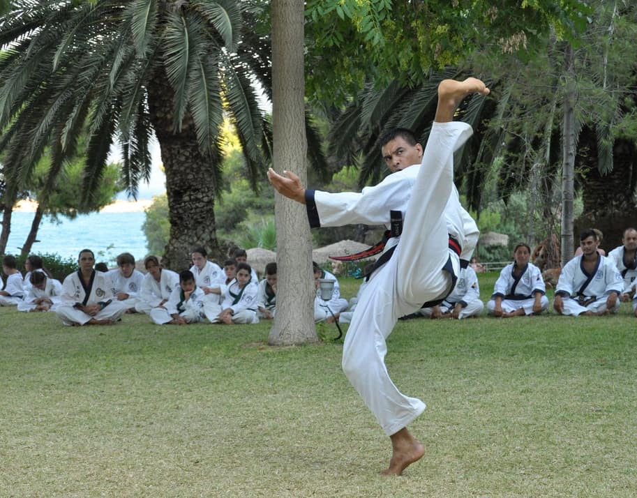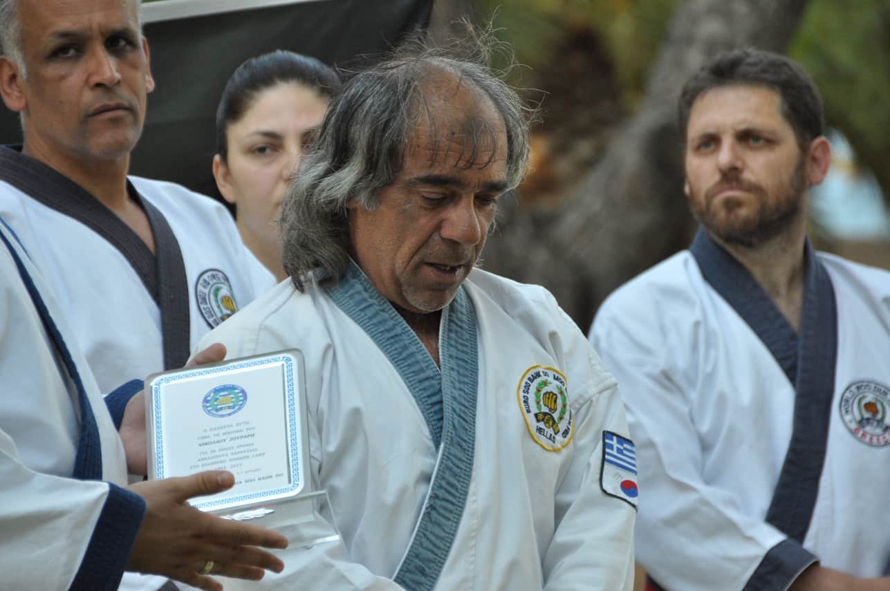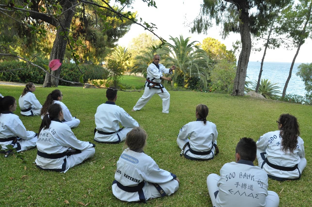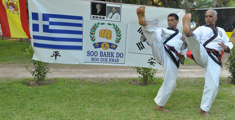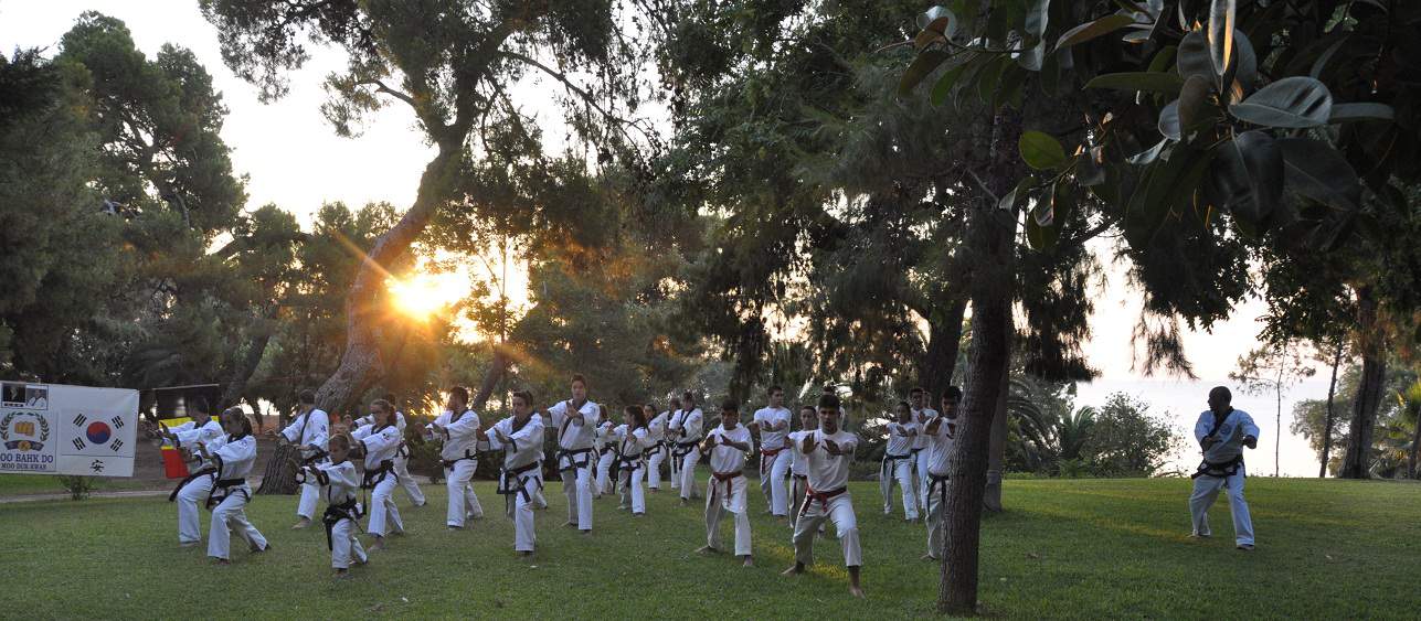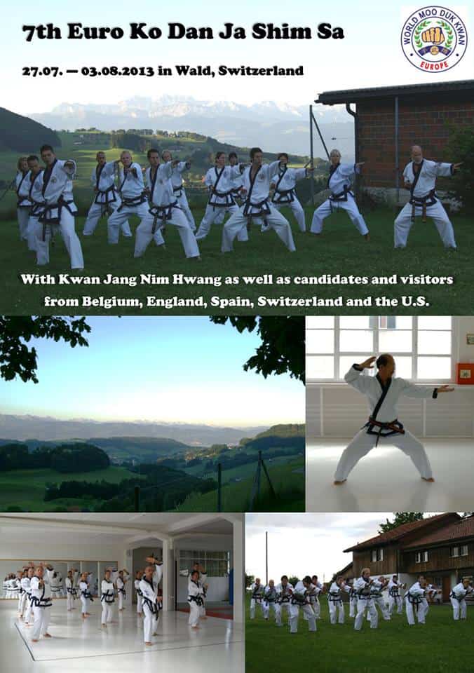 KWAN JANG NIM H.C. HWANG recently forwarded these photographs showing the Euro Summer Camp in Greece, under the guidance of Boussalaa Sa Bom Nim. Various Ko Dan Ja, Dan and Gup members from all over Europe are in attendance at the camp that ends July 7th 2013. He received a short email from Diego Salinas Sa Bom Nim (Dan Bon 35919) that included special greetings and warm wishes to all the World Moo Duk Kwan® membership. He also mentioned that the summer camp included topics of instructions, such as; Il Kwan Song, Moo Do Ja Seh, History of the Moo Duk Kwan®, the importance of connection with senior members, Kwan Jang Nim and the identity of the Moo Duk Kwan®. The next meeting of the Euro Moo Duk Kwan® will take place in Switzerland for their 7th Ko Dan Ja Shim Sa from July 27th through August 3rd 2013. See poster below.
