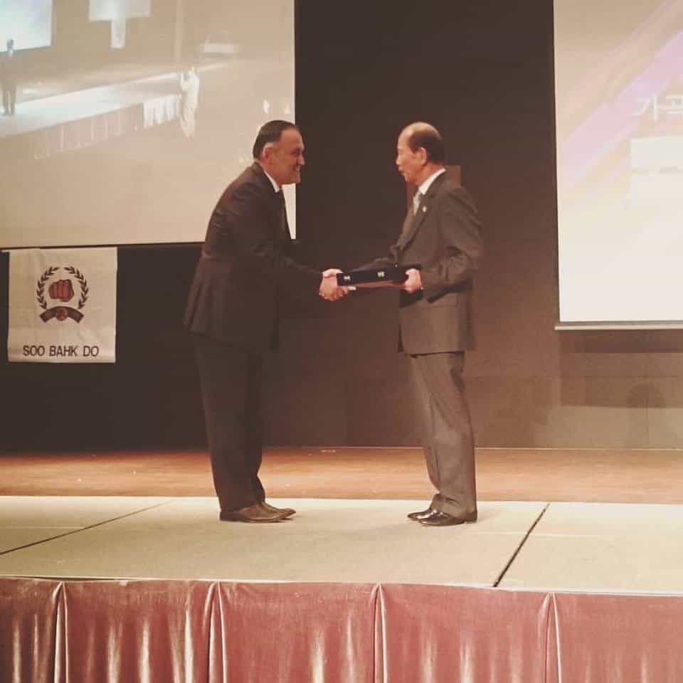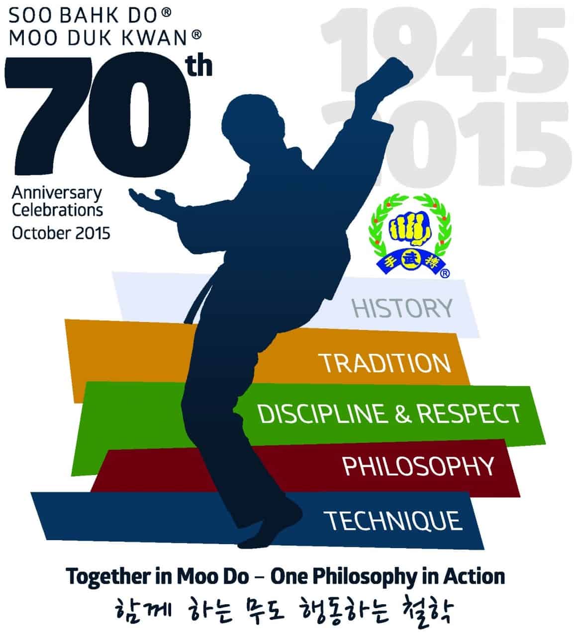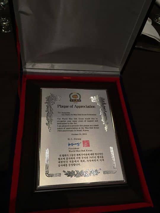 I would like to extend my deepest thanks on a very successful 70th anniversary celebration in Korea. It is through your visible action, dedication and spirit that the Moo Duk Kwan has been a living example of Moo Do in the martial arts world. Our unification of brotherhood celebrating our history and tradition, though our visible philosophy in our technique of... the demonstrations, has shown great respect to the founders vision, it has shown the world our deep connection to the founders principles and has made it continue to grow worldwide. I look forward to the future and the growth of the Moo Duk Kwan to create stronger human relations worldwide.