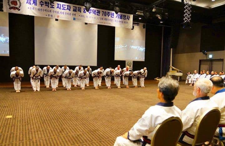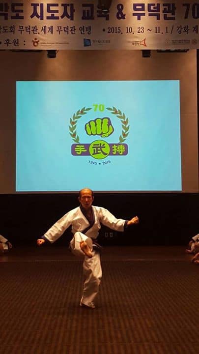 Kwan Jang Nim H.C. Hwang demonstrates Hwa Sun Hyung during the 70th Anniversary Celebration of the Moo Duk Kwan in South Korea. (Video courtesy of Viera Soo Bahk Do)