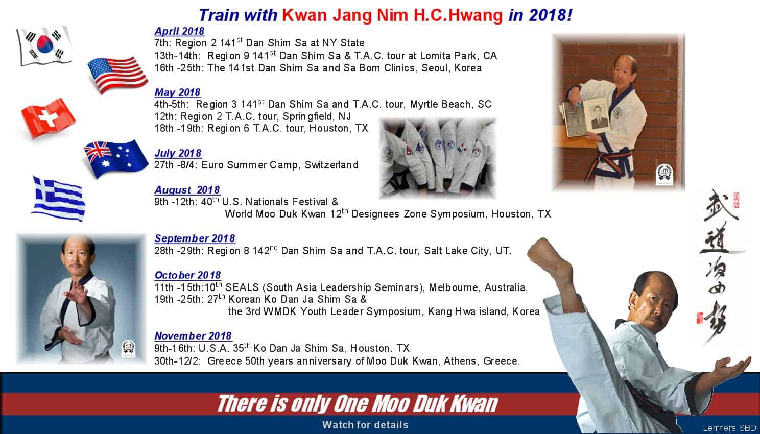 Kwan Jang Nim H.C. Hwang's Travel Itinerary for 2018