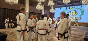 During the Master level evaluations, candidates are tested on the World Moo Duk Kwan standards of training and instruction. Candidates who are eligible can be certified as Sa Bom, Bu Sa Bom, and Kyo Bom, which are recognized internatioally and directly represent the Kwan Jang Nim, basically as certified instructors.