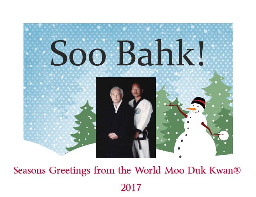 EXTENDING MY PERSONAL GREETINGS AND BEST WISHES AROUND THE WORLD TO THOSE WHO DEDICATED THEIR TIME AND EFFORTS TO THE ART OF SOO BAHK DO® IN THE MOO DUK KWAN® STYLE, THANK YOU FOR YOUR CONTINUING SUPPORT IN ENDORSING THE FOUNDER'S VISION OF WORLD PEACE THROUGH YOUR ACTION.