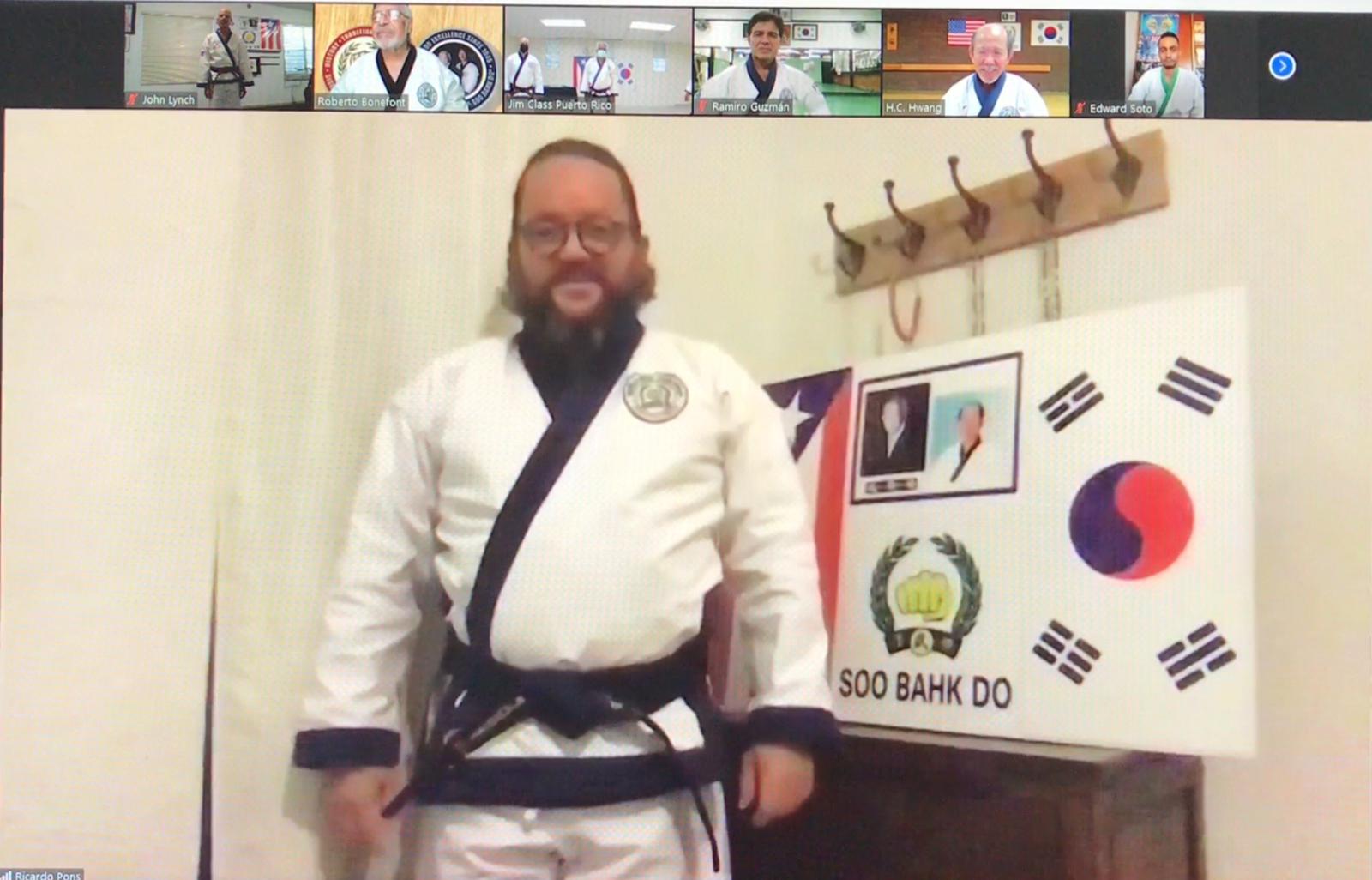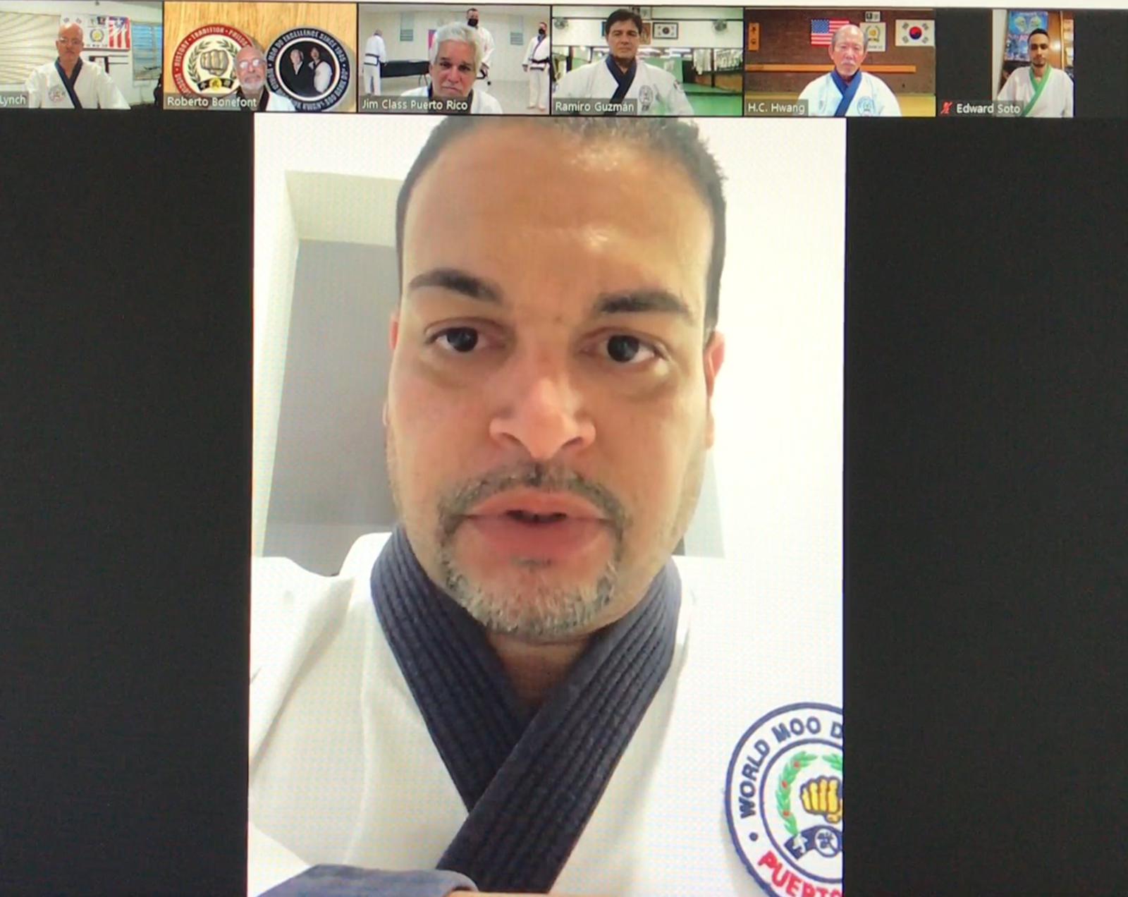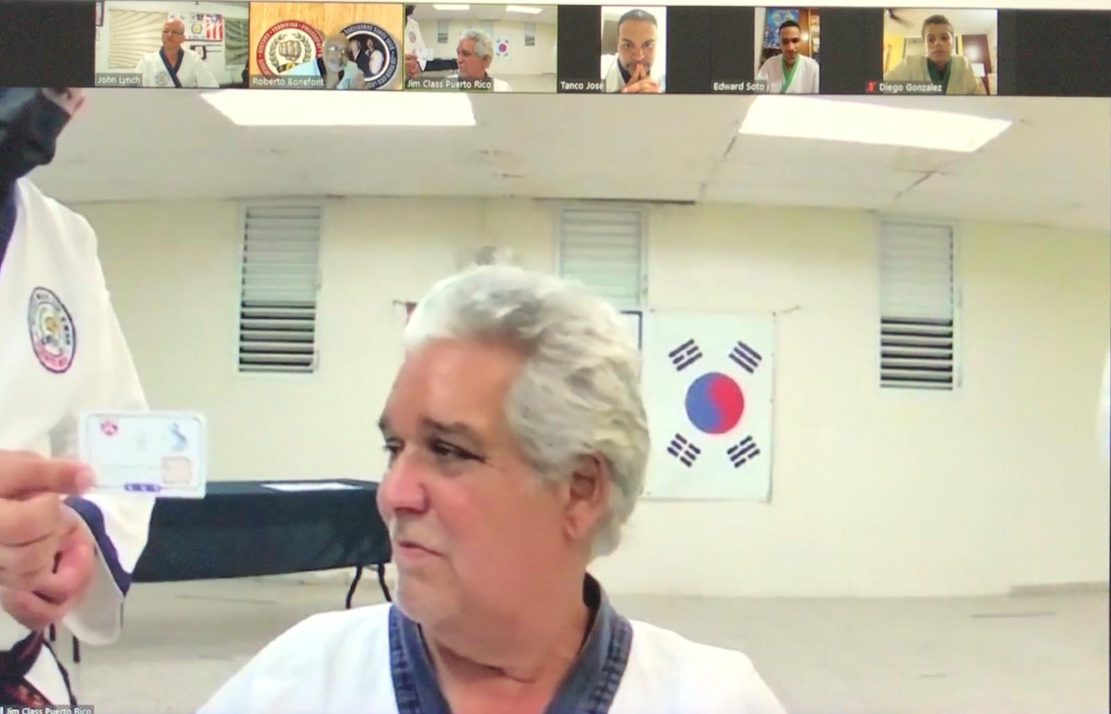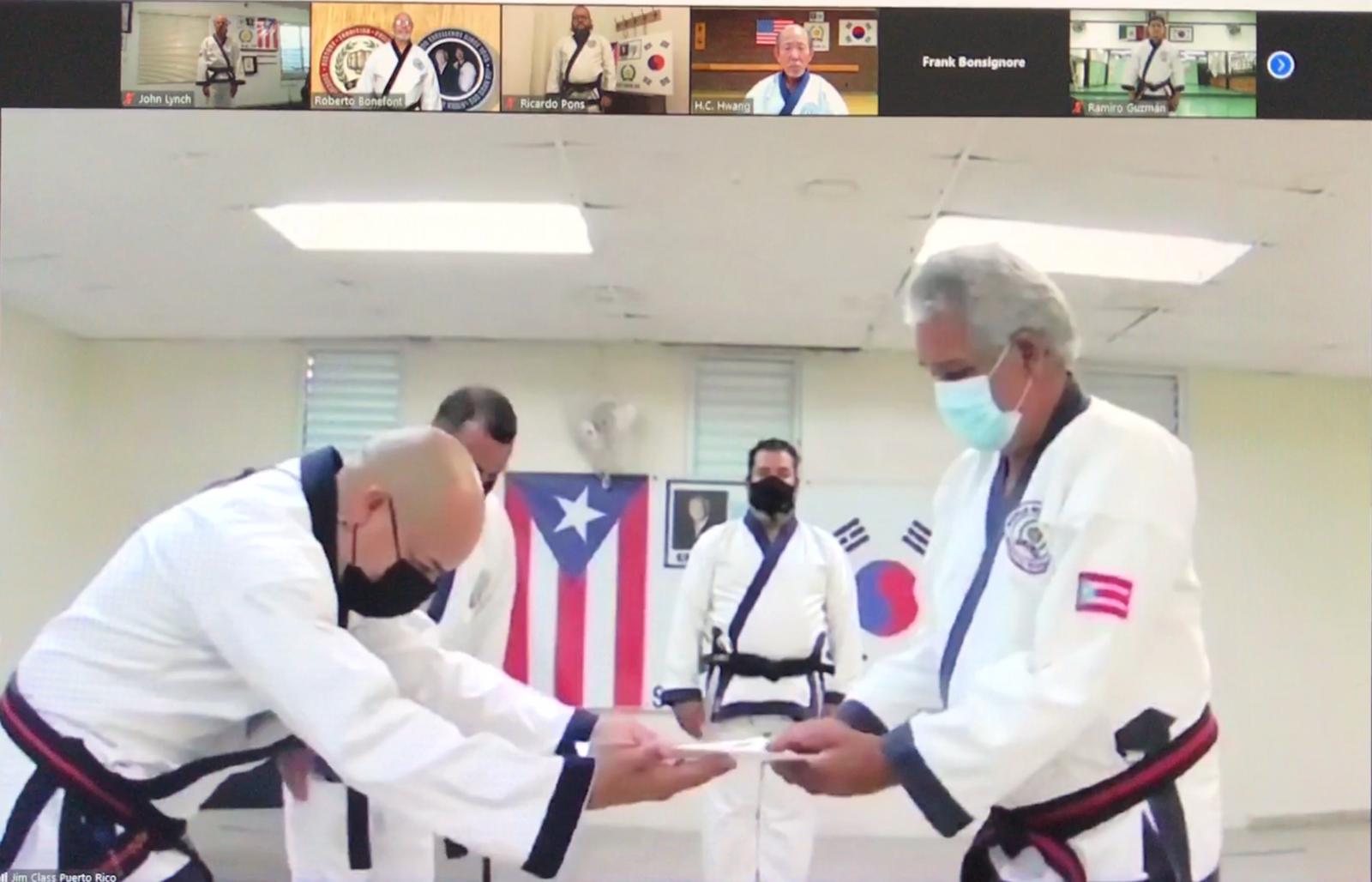 March 10, 2021 was a special day for Master Jaime Lazu, a founding member and TAC member, of the World Moo Duk Kwan® Puerto Rico. The ceremony was hosted on Zoom by Master Roberto Bonefont, Sr., Region 2, USA, who first visited Puerto Rico with Kwan Jang Nim and Bonsignore Sa Bom Nim in 1997 to rejoin their organization back into the World Moo Duk Kwan®.
