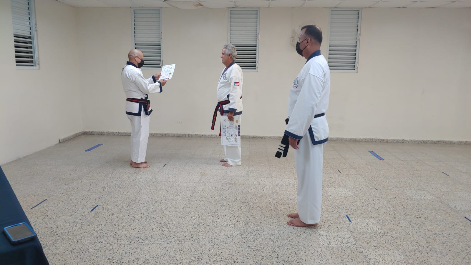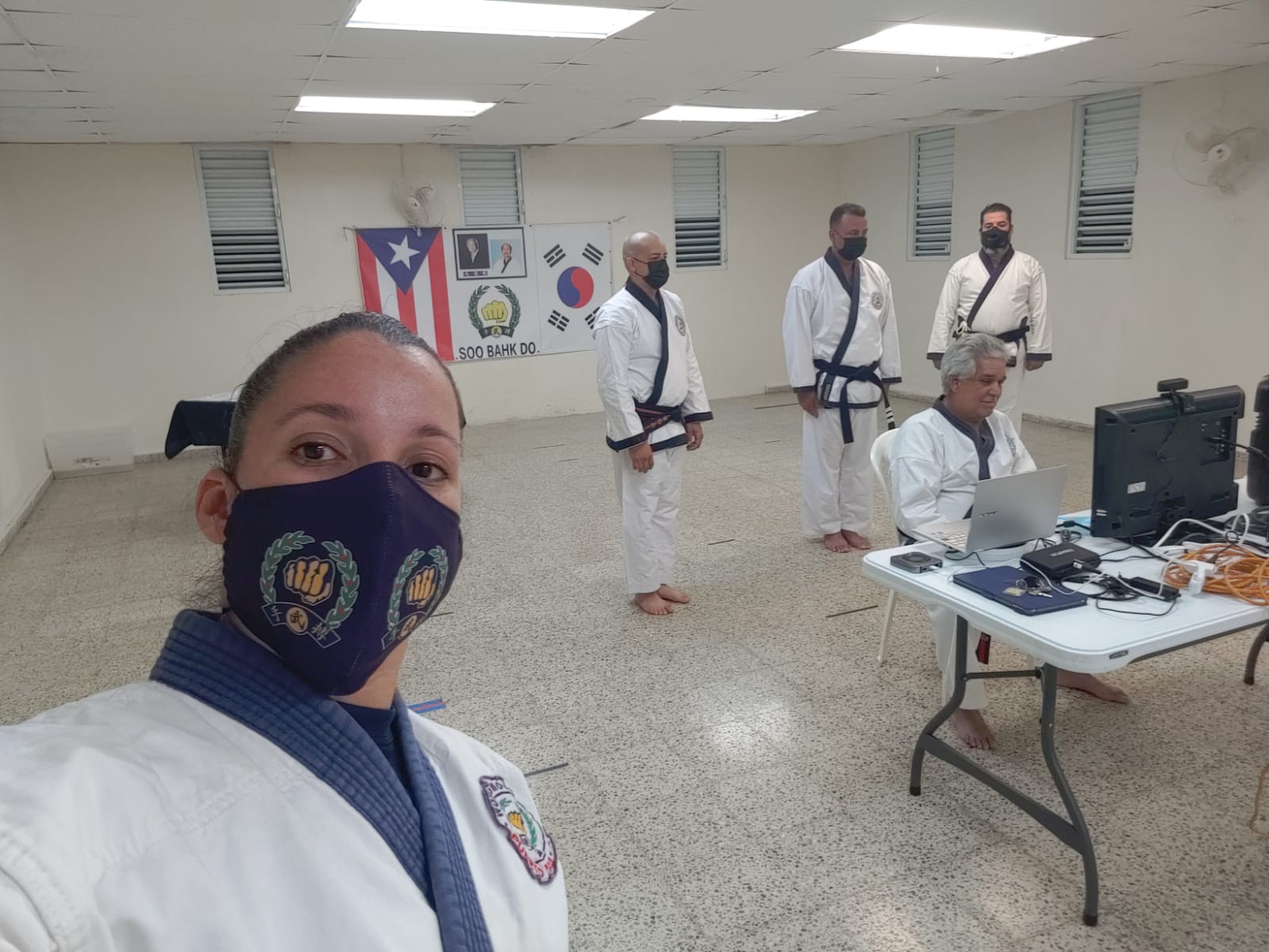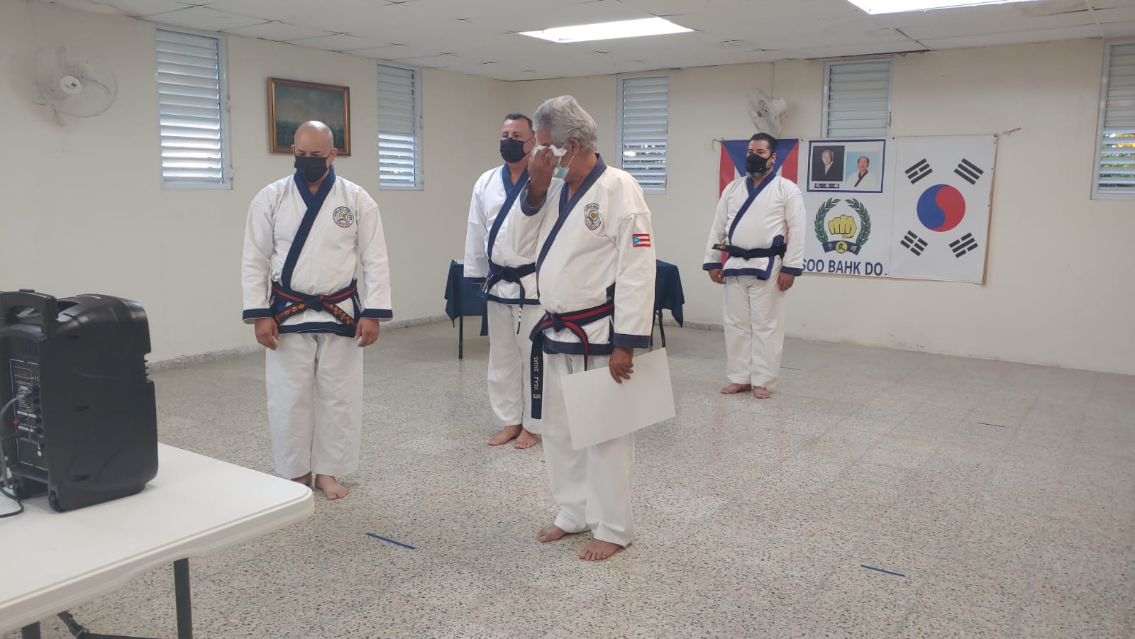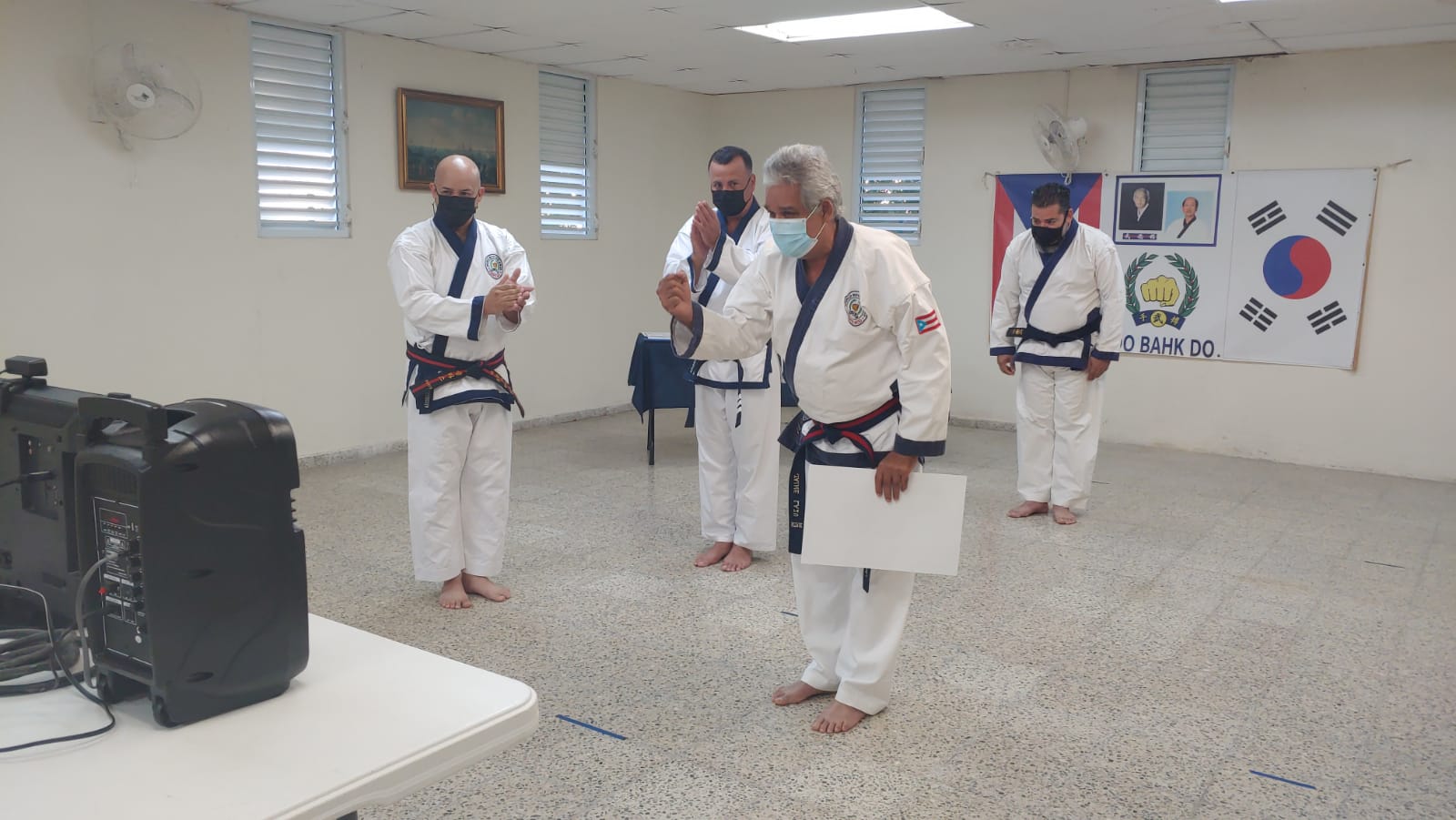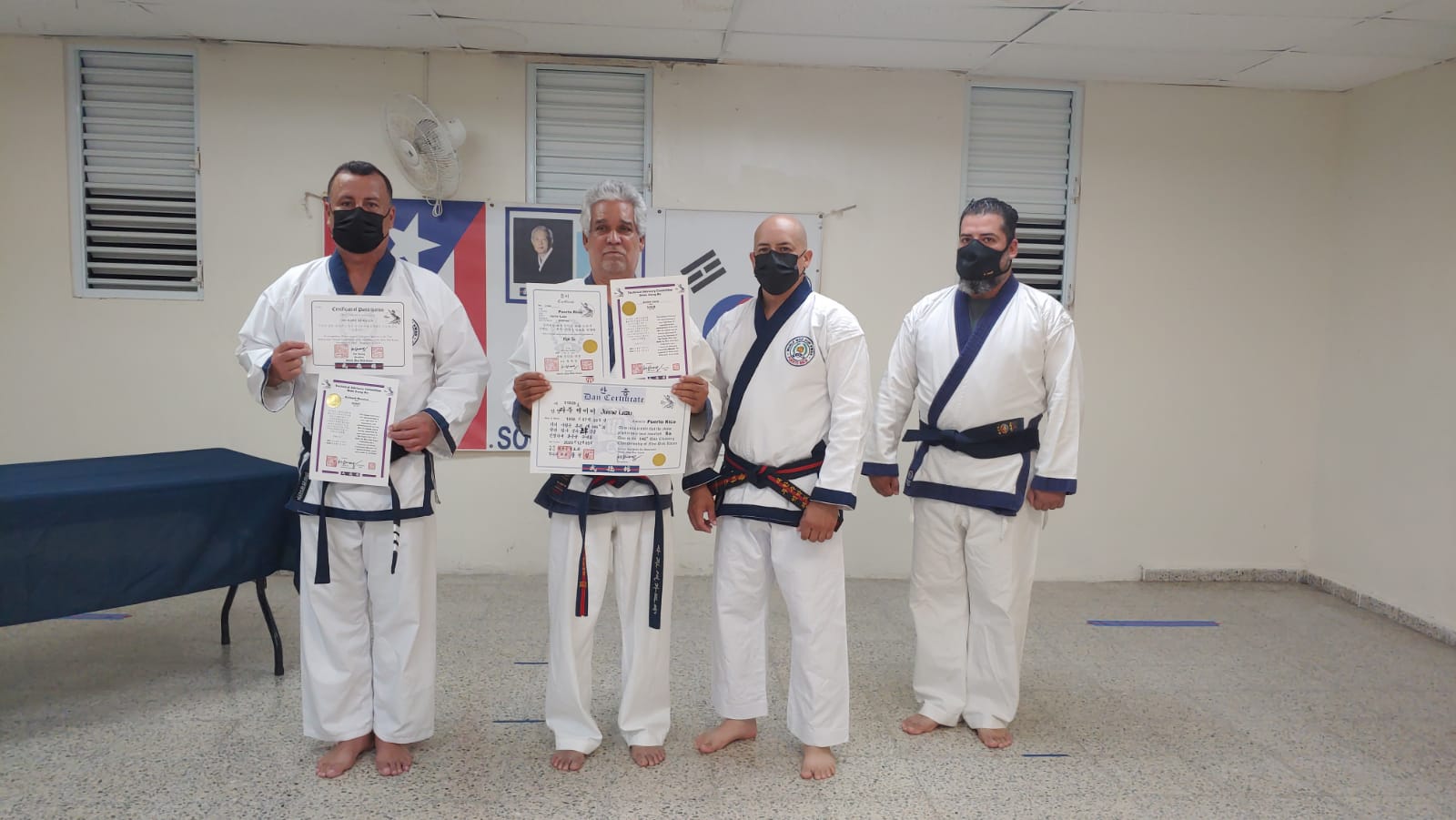To officially recognize all his accomplishments, dedication, sacrifices, and his loyalty to the World Moo Duk Kwan®, he was honored with his Sa Dan certificate, announced in Korean by Frank Bonsignore Sa Bom Nim, and handed to him by his current Sa Bom Nim instructor and designee for Puerto Rico, Jim Class, Sa Bom Nim, O Dan. This presentation was done virtually through a Zoom video session between Puerto Rico, New York, New Jersey, and Mexico.