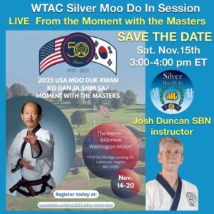 World TAC Silver Moo Do In, this will stream "Live" from the Moment with the Masters weekend; during 2025 USA Ko Dan Ja Shim Sa week.
