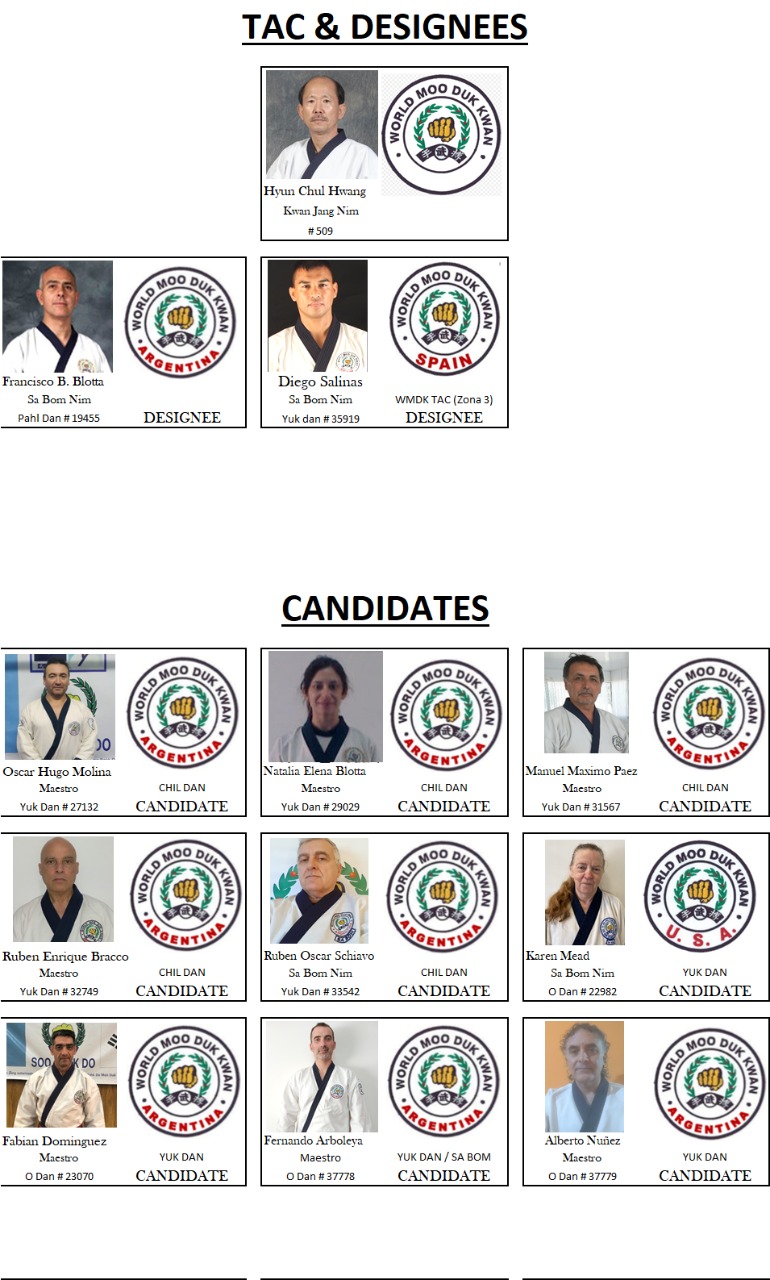 And so it begins again! This is the third Ko Dan Ja Shim Sa being conducted in 2022. First, there was Korea, then the USA, and now in Zone 4, Argentina! Below are the TAC and Designees involved in teaching this Shim Sa, another 7 day ordeal of intensive training in the Art of Soo Bahk Do Moo Duk Kwan. This unique approach of reaching the level of Ko Dan Ja in the Moo Duk Kwan will be no picnic, and achieving the next level of expertise for those who are Ko Dan Ja, will be tested on their grasp of Moo Do. Many of the candidates upon being invited to attend, begin training months before their evaluations take place, some have been preparing for years.