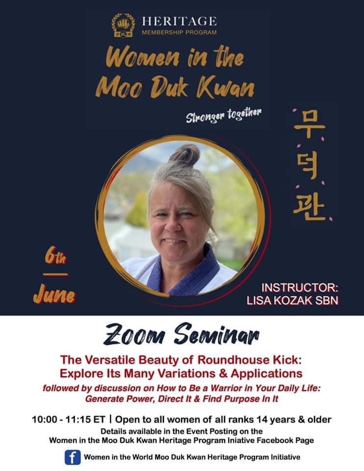 If you run across this logo above or the the phrase - Women in the World Moo Duk Kwan, STOP... click on that link and go to their Facebook Media site. There you will find detailed announcements, individual profiles, upcoming training events or recent past events, that are dedicated to female practitioners who are in the World Moo Duk Kwan. As you can see from this logo above, it includes Women in the Heritage Program.