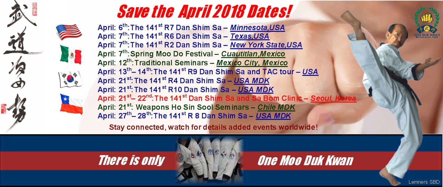 World Moo Duk Kwan Monthly Event Calendar April 2018