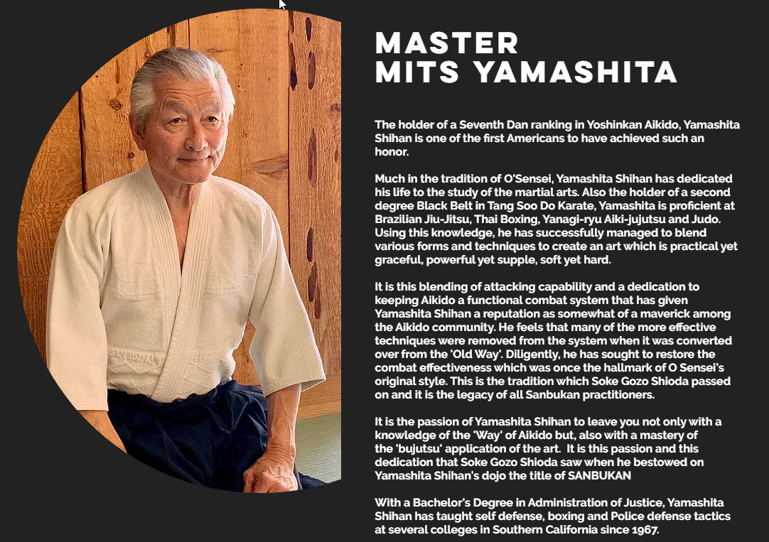Now, we will remember Shihan Mits Yamashita for his contributions to the Yoshinhan Aikido and to all his students, some of them also Moo Duk Kwan Practitioners. Below is a brief introduction to Shihan Yamashita from his Sanbukan Dojo website. You can see other videos on the Sanbukan Dojo YOUTUBE site.