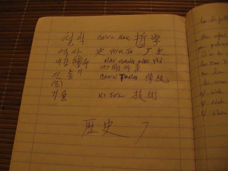 Quelle aventure ? Après tout, nous n’avons fait que des choses habituelles pour un stage international : nous entraîner, tenir des réunions, faire avancer un projet ; rien que de très classique pour un Ko Dan Ja shimsa. Mais si je dois dire en quoi a consisté cet esprit d’aventure je dirais : la confiance qu’il y avait entre nous, que je nommerais du beau mot de fraternité, au-delà même des désaccords, des fatigues, des agacements. La deuxième chose est qu’il me semble que nous avions tous plus ou moins clairement le sentiment de vivre quelque chose d’unique : la joie partagée de participer à une première fois. Pas à « l’Histoire », juste le moment présent, vivre notre vie le plus complètement possible. A l’image de cela, fut la soirée festive : tout le monde y était super vivant. Les coréens chantent souvent bien au karaoké, mais, dans mon souvenir, par je ne sais quel miracle, tout le monde avait du talent ce soir là : danseurs, percussionnistes, comiques.... Ce n’est pas si souvent pour 50 personnes réunies.